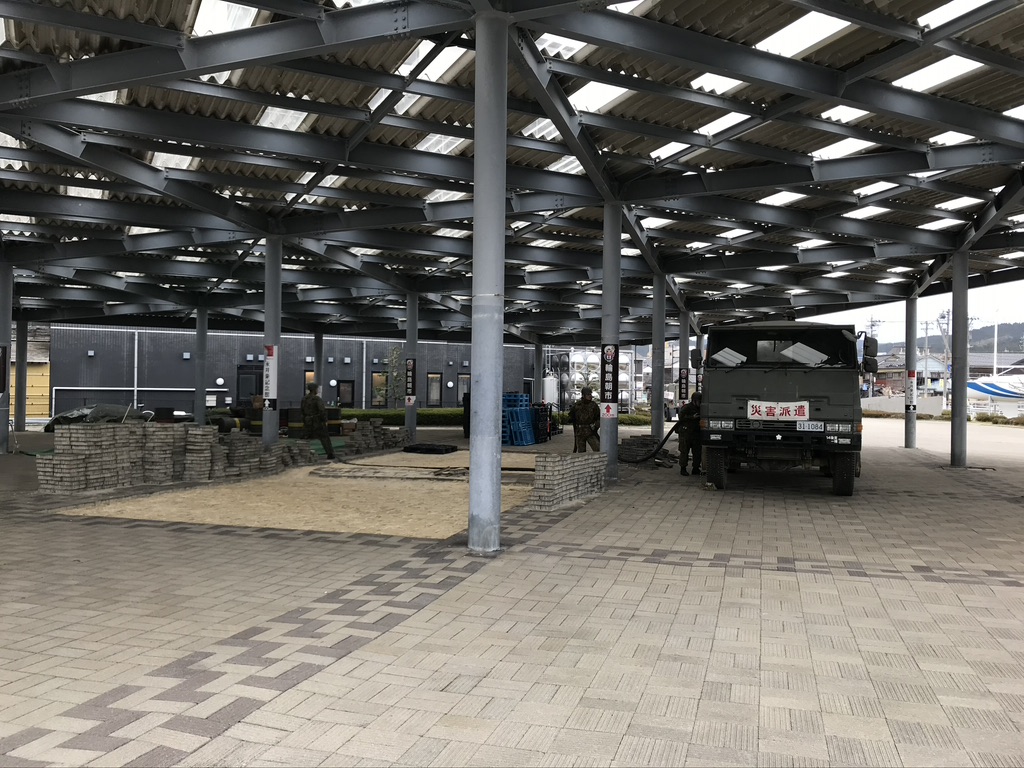 また、被災者の命と健康を守るため、環境の整った避難先への移動が実施され、1月8日に石川総合スポーツセンターメインアリーナを一時的な受入れ先である1.5次避難所として開設しました。1月9日には、2次避難施設へ移動するための受付窓口が開設されて最大5,275人(2月16日)がホテル・旅館等に避難しました。
